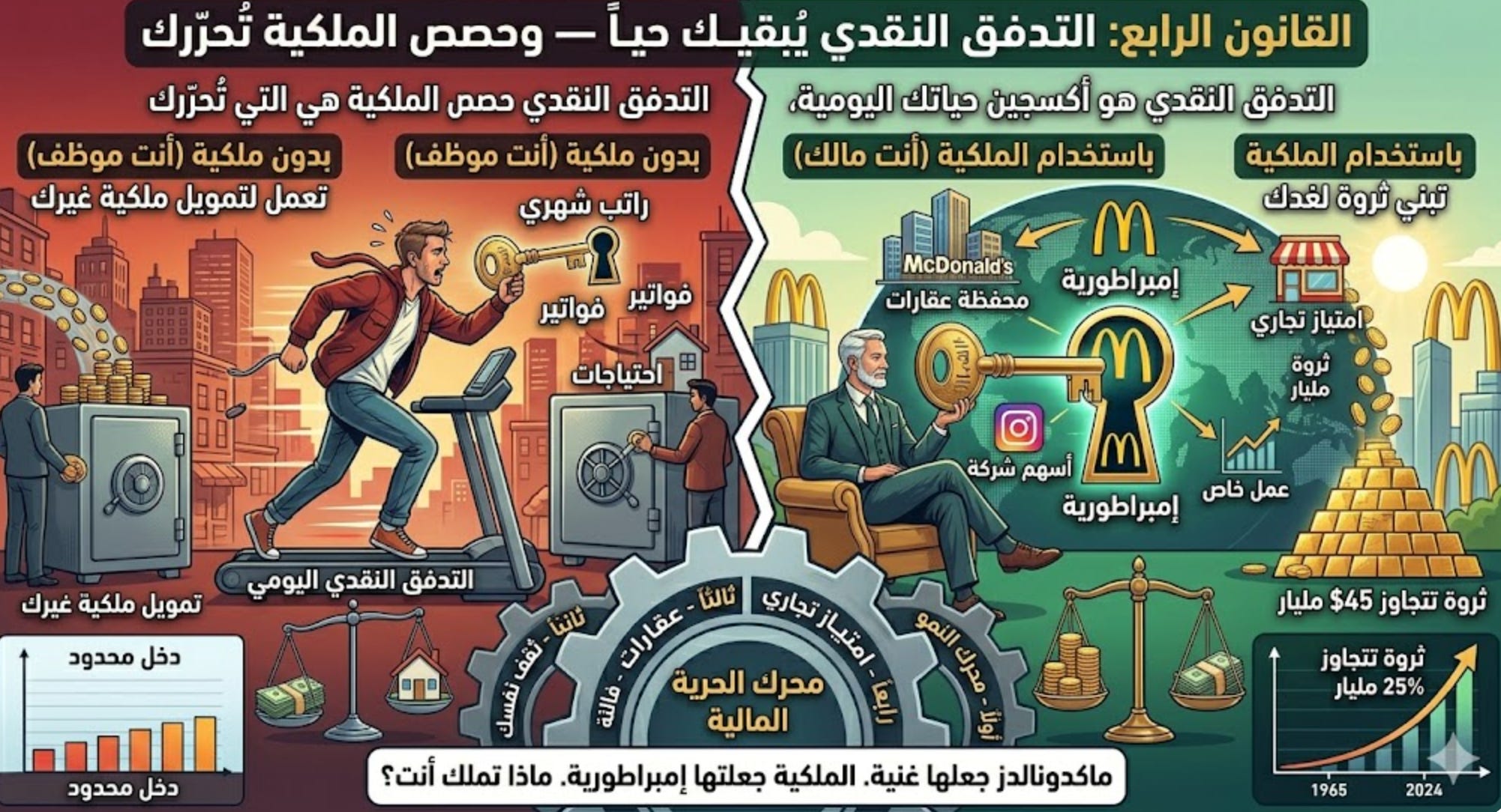 القانون الرابع: التدفق النقدي يُبقيك حياً — وحصص الملكية تُحرّرك